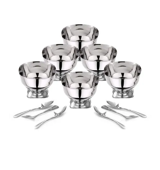 ชุดชามใส่ไอศกรีมขนาดเล็ก6ชิ้นทำจากสเตนเลสสตีลสำหรับบาร์เสิร์ฟของหวาน