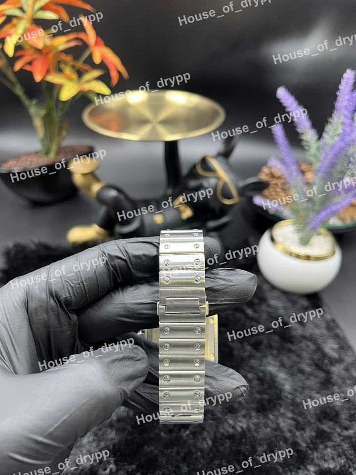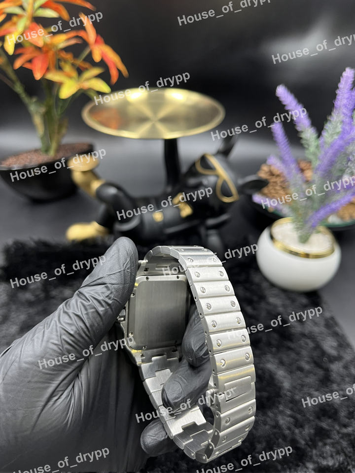 นาฬิกาอัตโนมัติทรงสี่เหลี่ยมสแตนเลสสตีลประดับเพชร VVS Lab Grown บนขอบหน้าปัดสีเขียวโรมัน สไตล์ฮิปฮอปสุดหรู