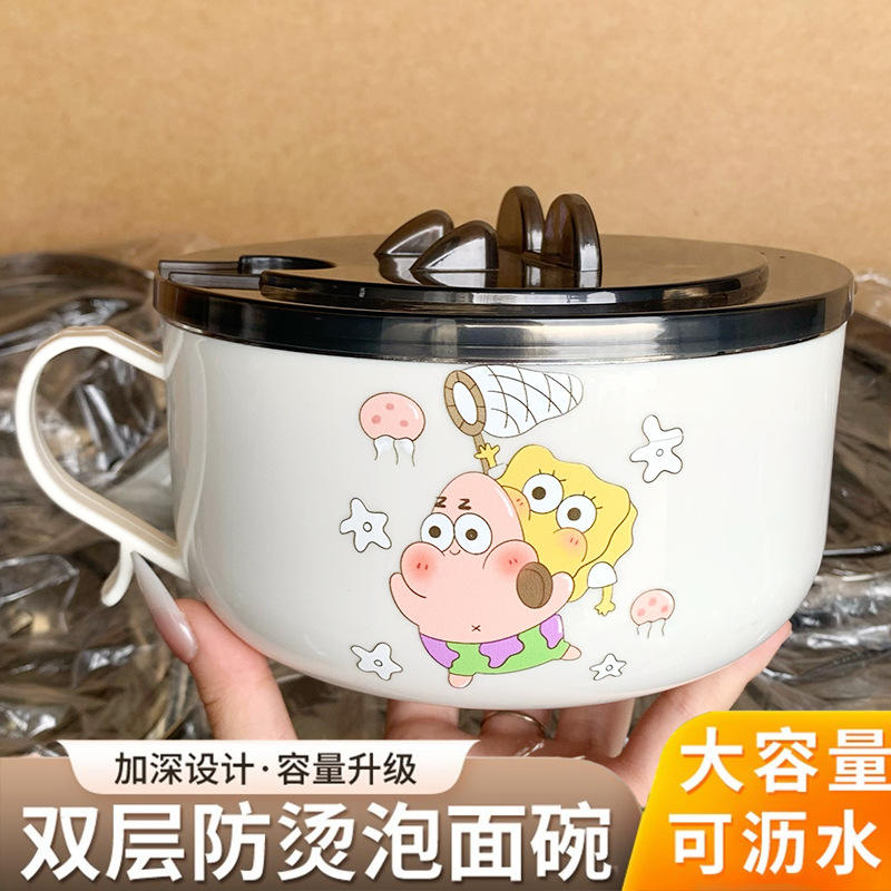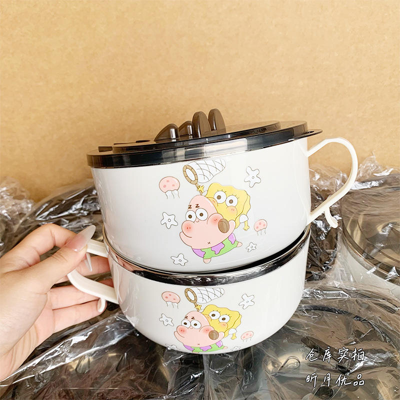 ชามบะหมี่กึ่งสำเร็จรูปสแตนเลสพร้อมฝาปิด ดีไซน์การ์ตูน ความจุขนาดใหญ่ ปิดสนิท ใช้กับไมโครเวฟได้ สำหรับนักเรียน สำนักงาน ใช้ในบ้าน
