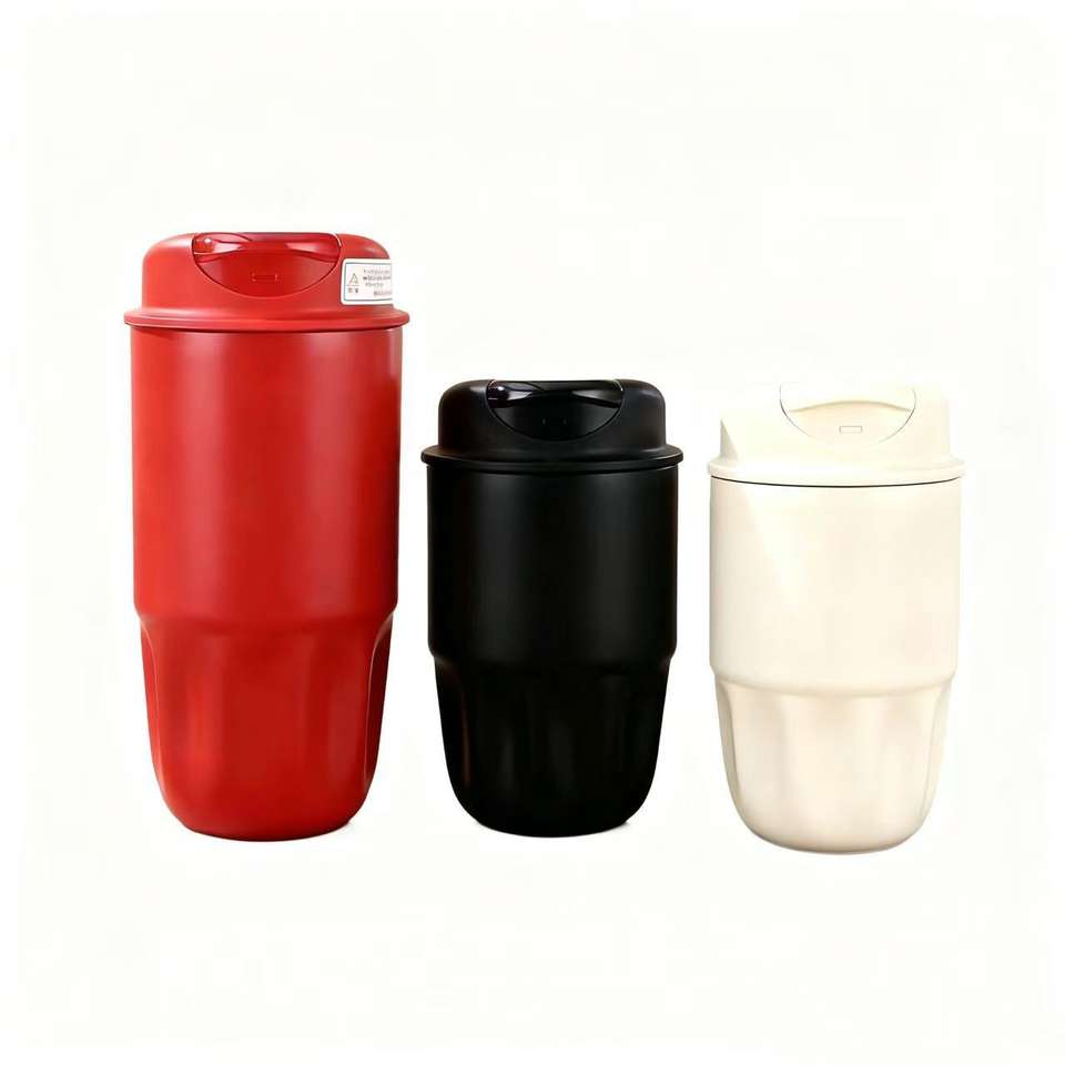ถ้วยสแตนเลสหุ้มฉนวน 316 แก้วกาแฟพร้อมฝาปิดสำหรับดื่มโดยตรงแบบพกพาสำหรับรถยนต์ใช้กลางแจ้งสีขาวสีดำฝาสีแดง