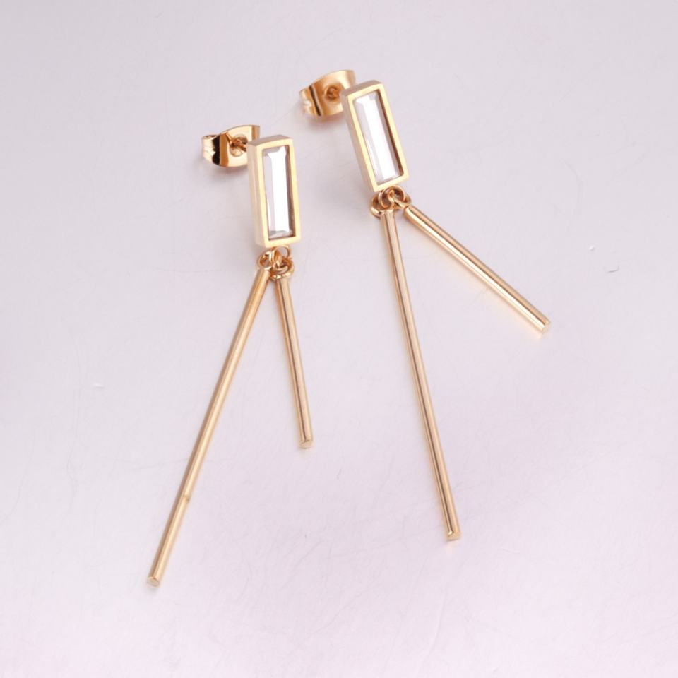 เครื่องประดับสแตนเลสสตีล ชุบทอง 18K PVD ต่างหูทรงสี่เหลี่ยมประดับเพชรซิร์คอน ดีไซน์หรูหราทันสมัย ต่างหูแบบยาวสำหรับผู้หญิง ต่างหูห้อยทรงเสน่ห์