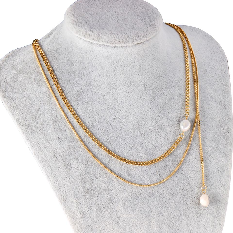 สร้อยคอจี้สองชั้นชุบทอง 18k ทำจากสแตนเลสสำหรับผู้หญิง