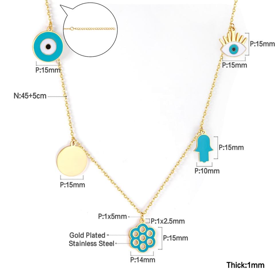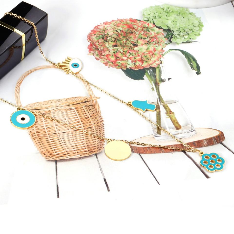 วัสดุเครื่องประดับสแตนเลสสตีล ชุบทอง 18K แบบกำหนดเอง จี้รูปดวงตาและมือ หลายสไตล์ สร้อยคอสำหรับผู้หญิง