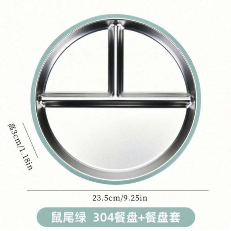 จานเด็กสแตนเลส 304 ปลอดสารพิษ เป็นมิตรกับสิ่งแวดล้อม ป้องกันการรั่วซึม ปลอดสาร BPA ใช้กับเครื่องล้างจานได้ พร้อมจุกดูด