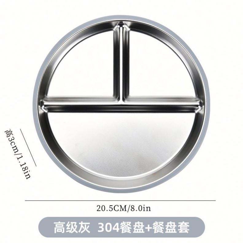 จานสแตนเลสสำหรับเด็ก จานซิลิโคนกันลื่นปลอดสารพิษ เป็นมิตรกับสิ่งแวดล้อม จานสแตนเลสสำหรับเด็กพร้อมจุกดูด