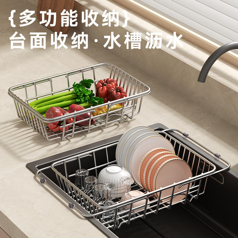 ตะแกรงกรองเศษอาหารสแตนเลสสำหรับอ่างล้างจาน ใช้ล้างผักและกรองจาน ดีไซน์ยืดหดได้ ระบายน้ำง่าย