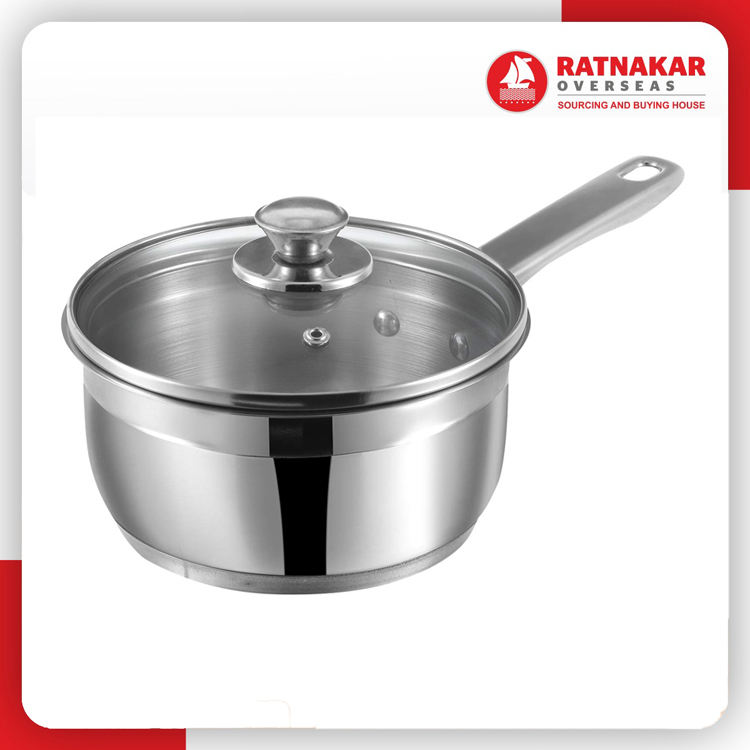 ชุดเครื่องครัวสเตนเลสสตีล หม้อต้มน้ำซุปทรงลึก ด้ามจับยาว พร้อมฝาปิด ขาย