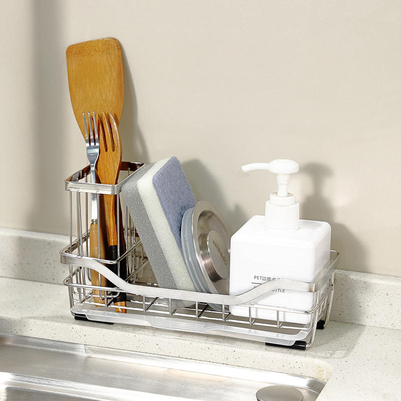 ชั้นวางของอเนกประสงค์สำหรับอ่างล้างจานสแตนเลส พร้อมถาดพับได้ แห้งเร็ว สำหรับวางบนเคาน์เตอร์