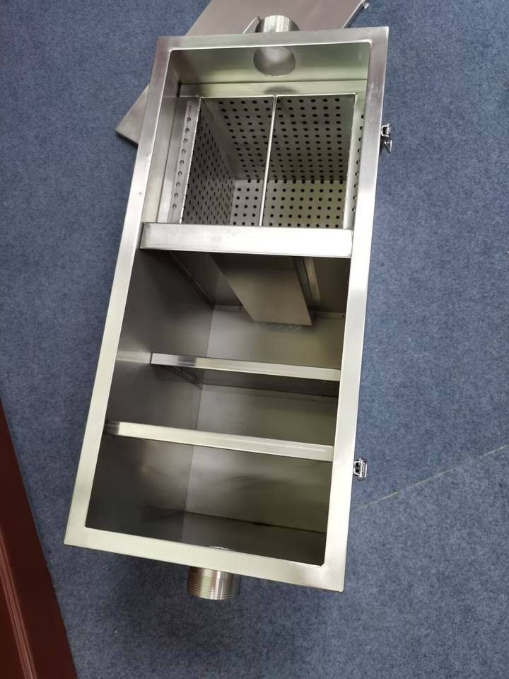 เครื่องกรองไขมันสแตนเลสสำหรับครัวเชิงพาณิชย์ ตัวกรองน้ำมันสำหรับแยกน้ำเสียในครัวแบบหลายขั้นตอน