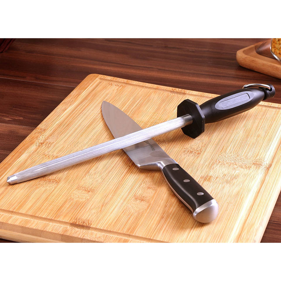 Stainless Steel Knife Sharpener Rod With Black Handle For Kitchen Use Manual Sharpening Tool ND R2