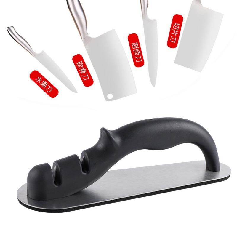เครื่องลับมีดสแตนเลสพร้อมฐานรอง เครื่องมือลับคมแบบแมนนวลสำหรับใช้ในครัวเรือน ดีไซน์ทนทาน