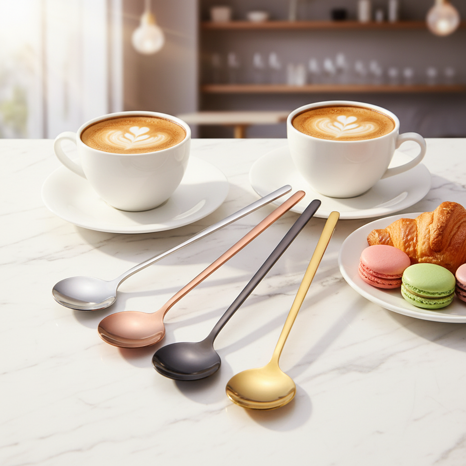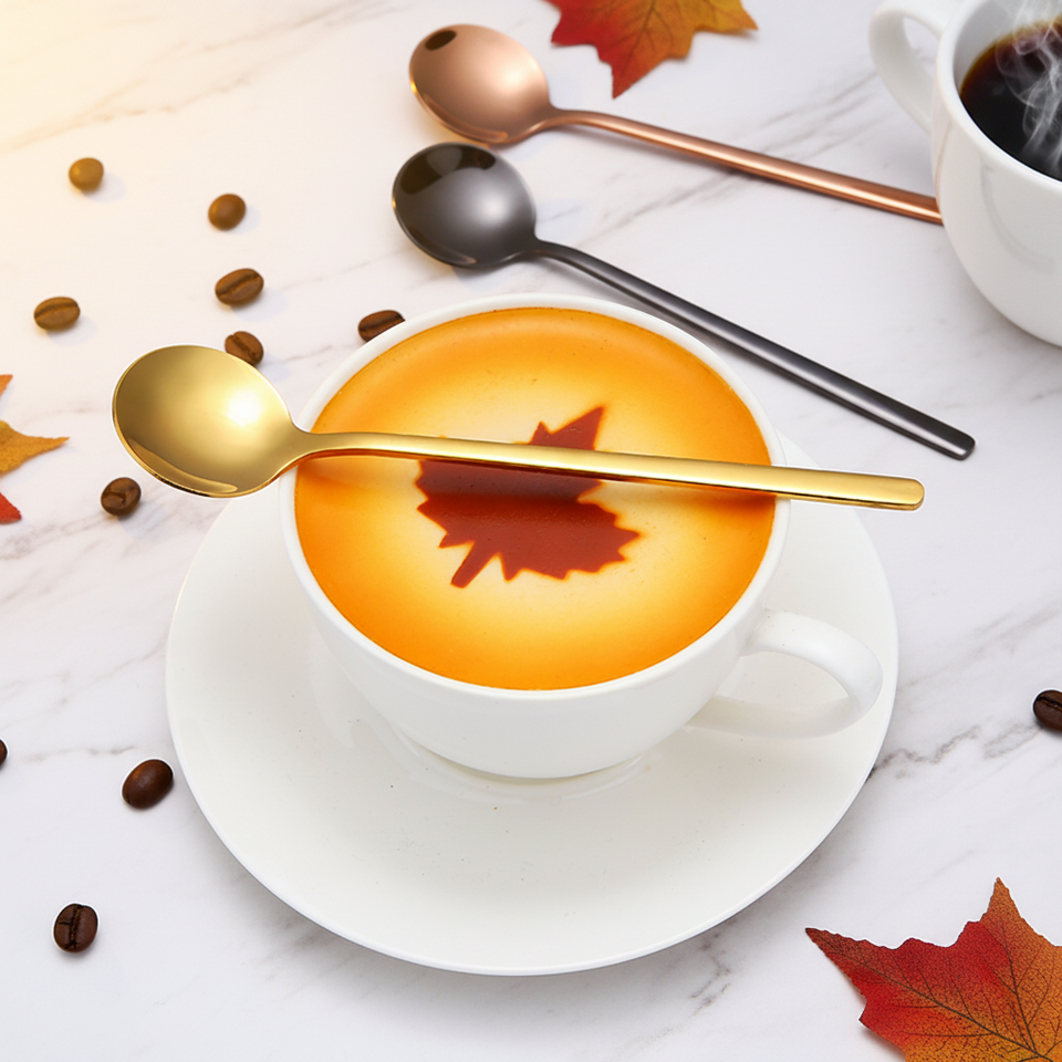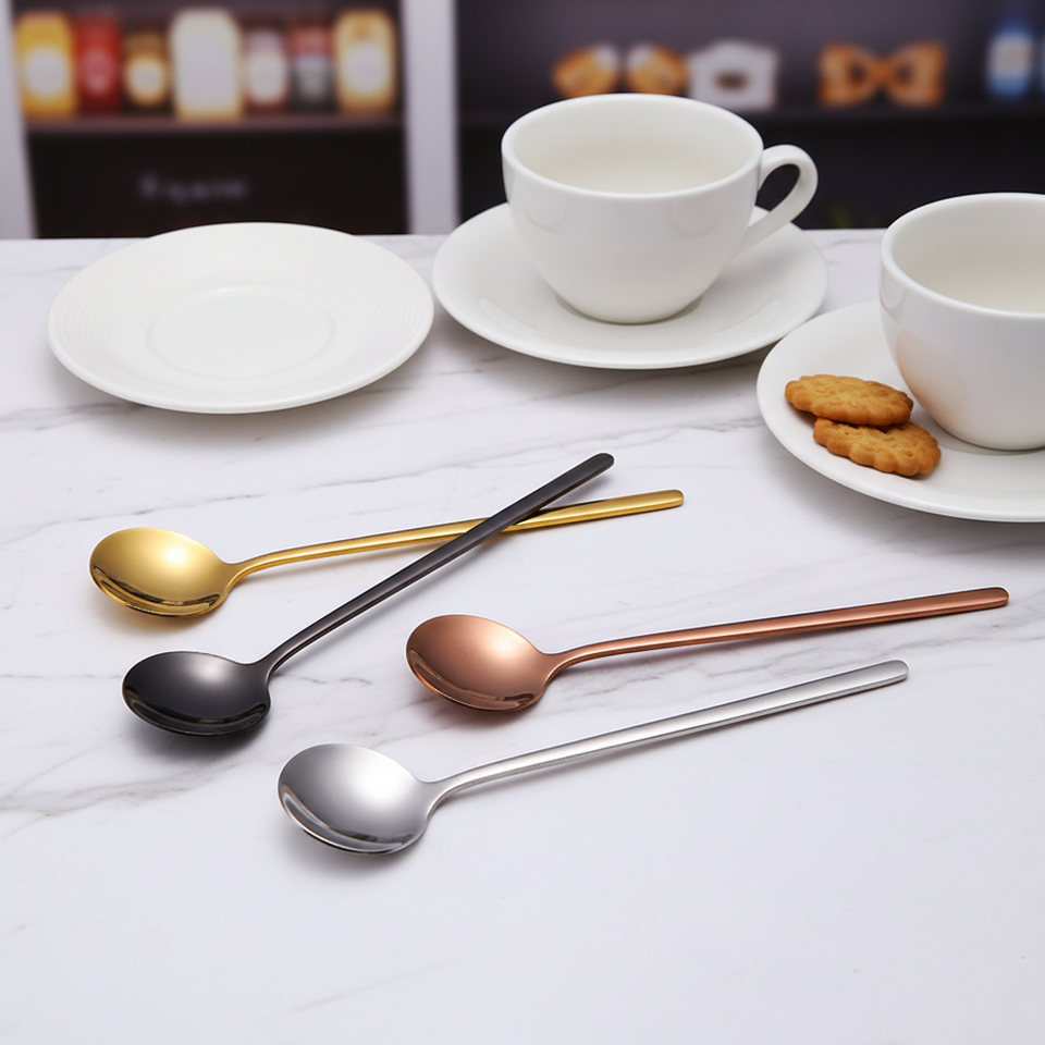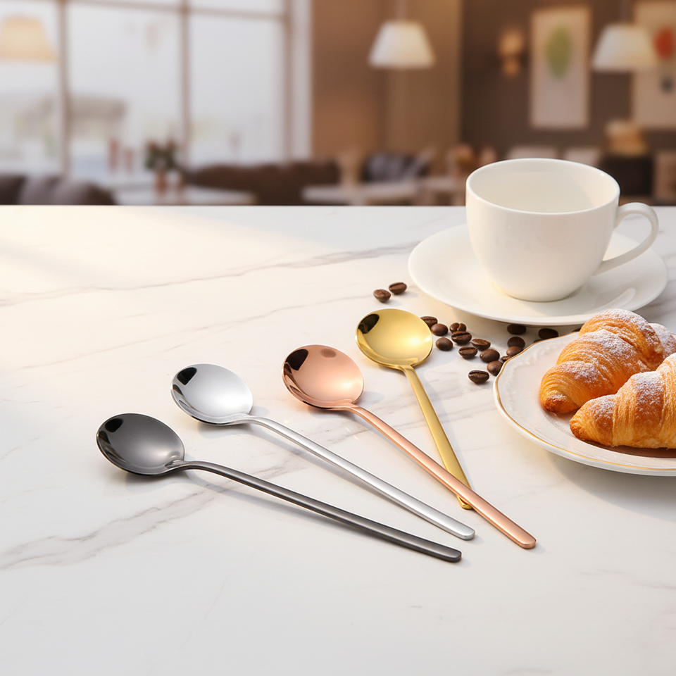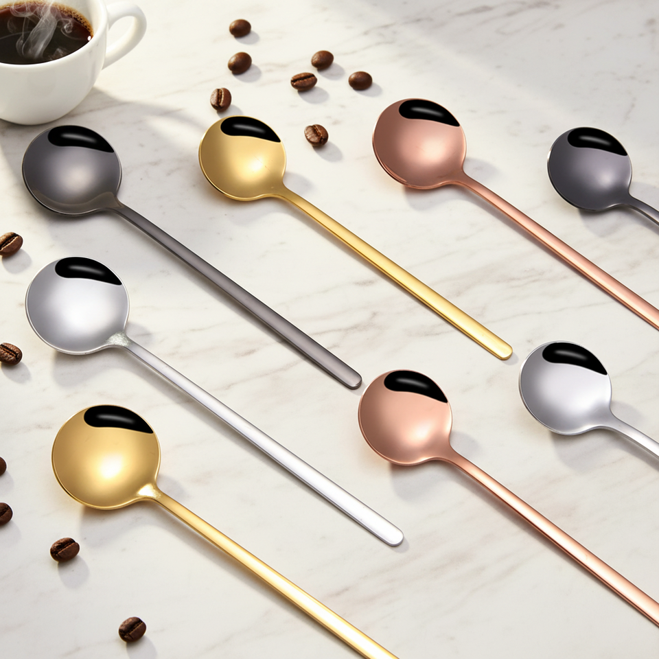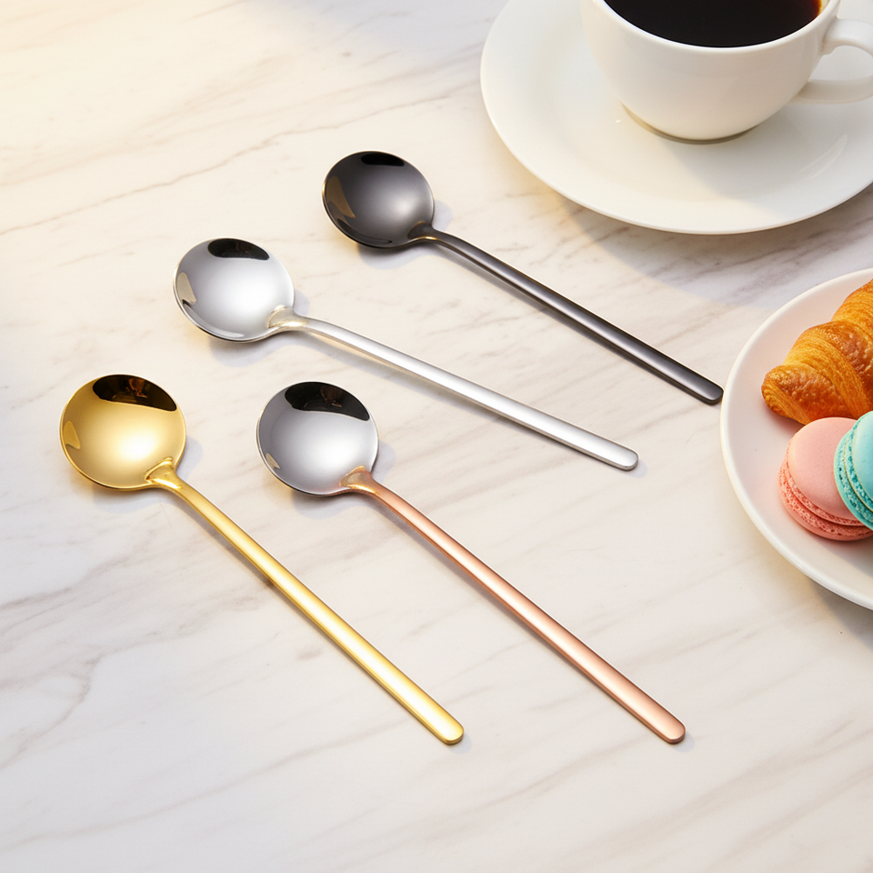 ช้อนเสิร์ฟสแตนเลสดีไซน์เกาหลีรักษ์โลก พร้อมเคลือบสีเงิน สีทอง สีโรสโกลด์ สำหรับไอศกรีม กาแฟ ชา