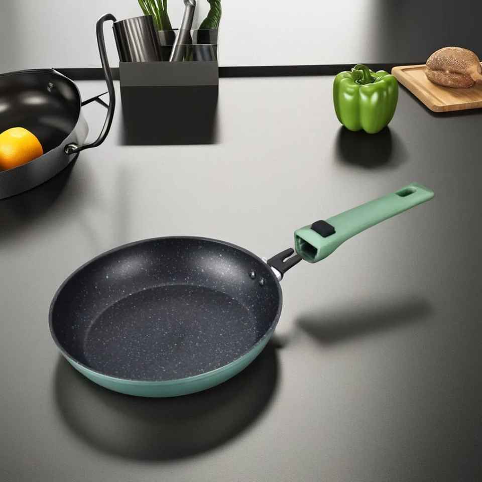 กระทะเหล็กเคลือบสแตนเลส ทนทาน ดีไซน์ทันสมัย ใช้กับเตาแม่เหล็กไฟฟ้าได้ พร้อมด้ามจับพลาสติก ความจุ 1-2 ลิตร