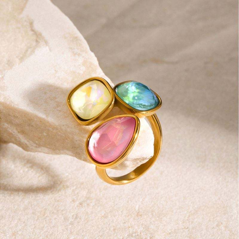 แหวนแฟชั่นแบบเปิดขอบสแตนเลส18K PVD ชุบโลหะเครื่องประดับส่วนบุคคลเครื่องประดับที่น่าดึงดูดสำหรับผู้หญิง