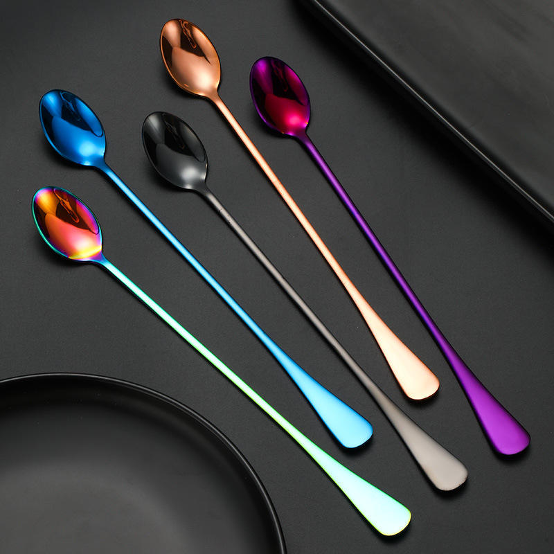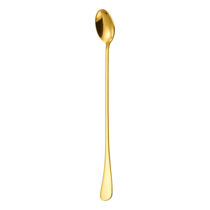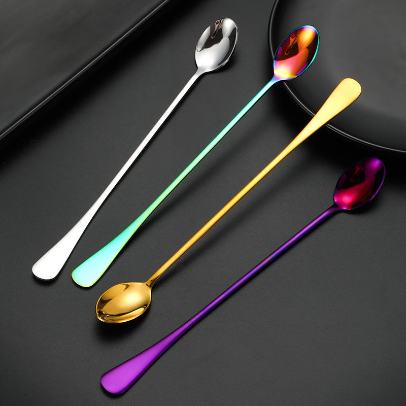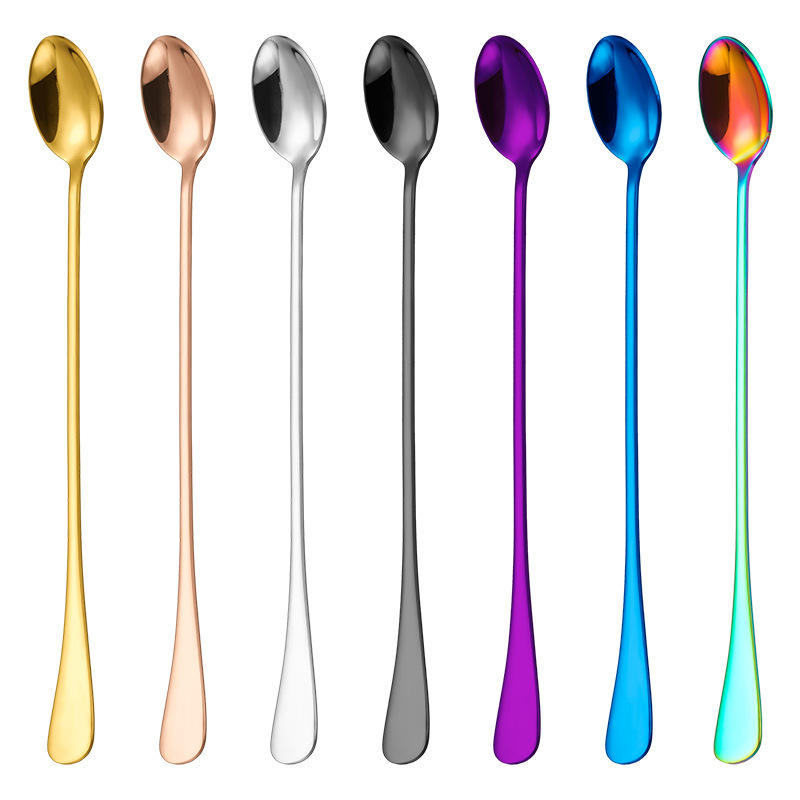 ช้อนน้ำแข็งด้ามยาวสแตนเลส 24 ซม. ช้อนคนค็อกเทลแบบใช้ซ้ำได้ ช้อนผสมบาร์ สีทึบ