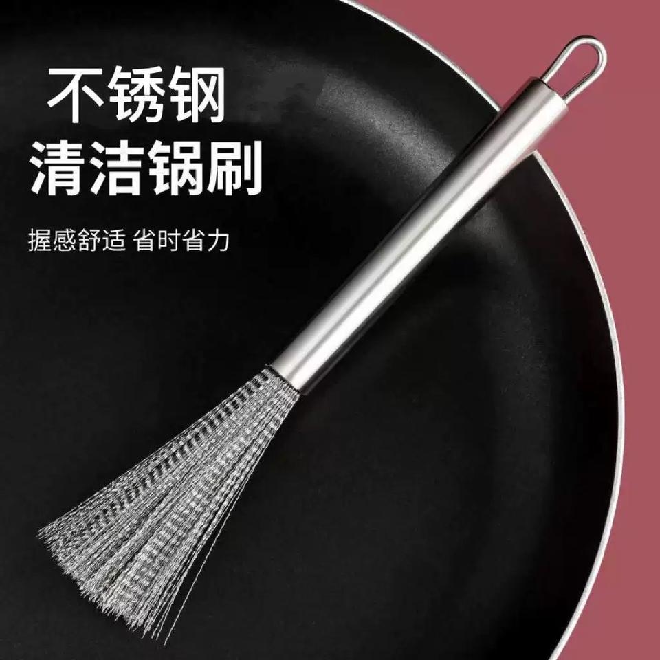 แปรงทำความสะอาดหม้อด้ามยาวสแตนเลส ป้องกันรอยขีดข่วน สำหรับทำความสะอาดภาชนะครัวและป้องกันพื้นผิว