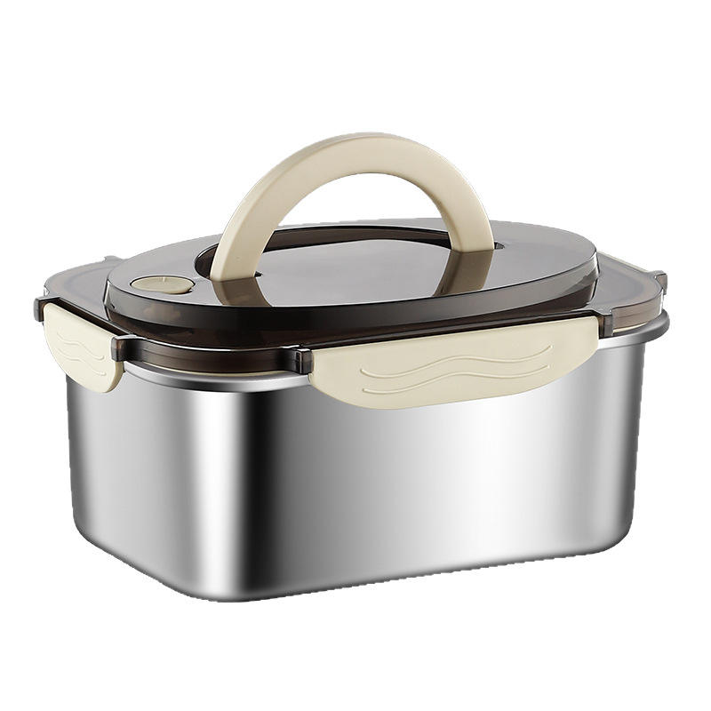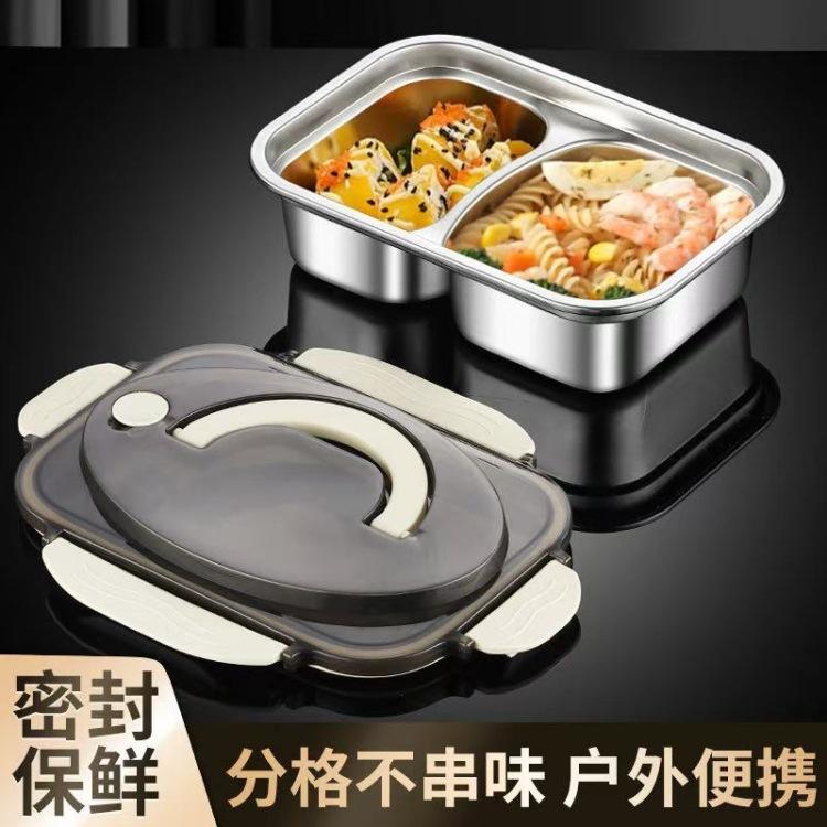 กล่องอาหารกลางวันสแตนเลสทรงสี่เหลี่ยมฝาปิดสนิท กล่องเก็บอาหารสำหรับซื้อกลับบ้าน กล่องสลัดเบนโตะ