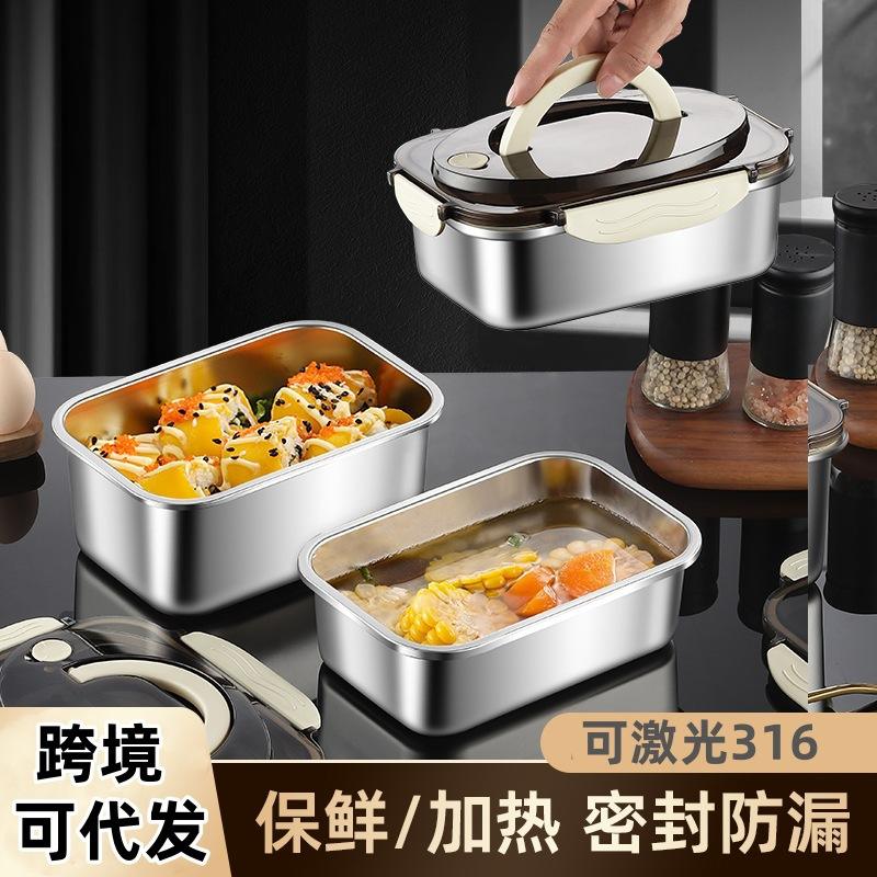 กล่องอาหารกลางวันสแตนเลสทรงสี่เหลี่ยมฝาปิดสนิทภาชนะเก็บอาหารสำหรับใช้ซื้อกลับบ้าน