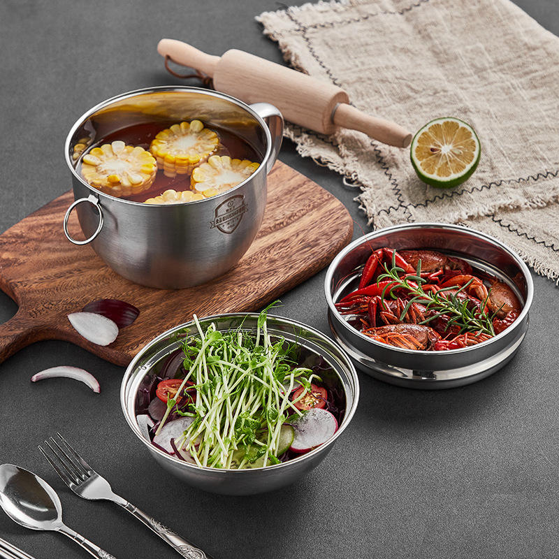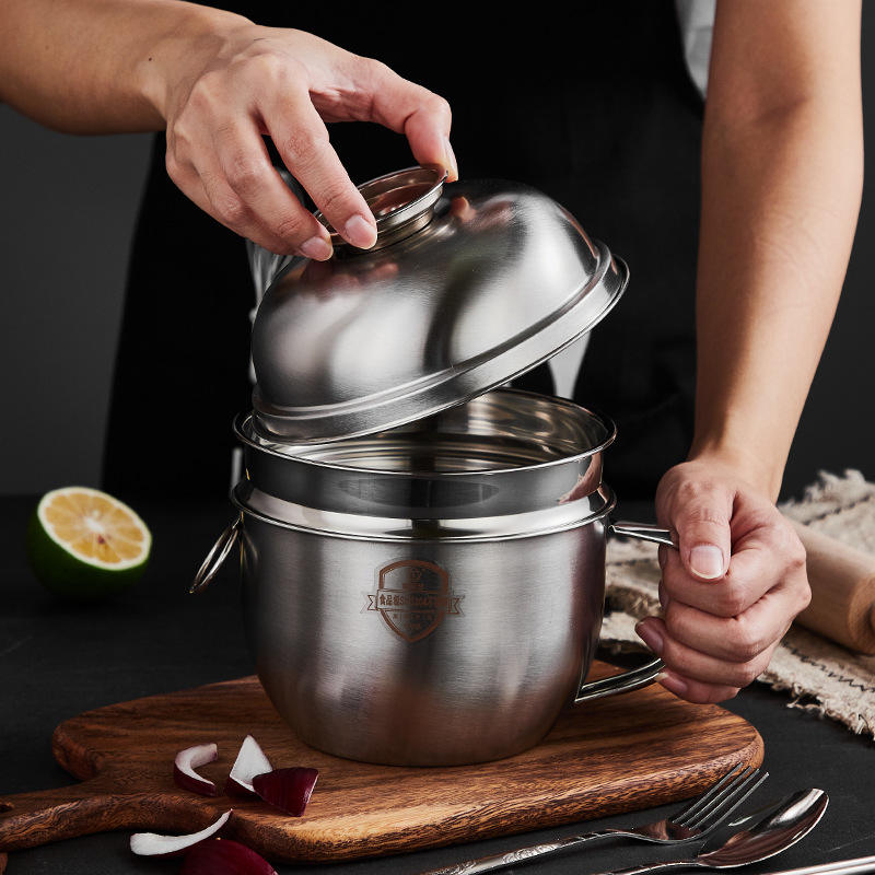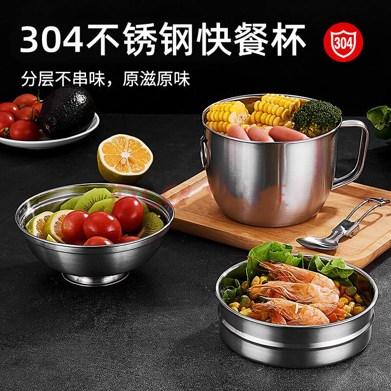 กล่องอาหารกลางวันสแตนเลสทรงกลมพร้อมฝาปิด 304 ภาชนะใส่อาหารสำหรับนักเรียนและผู้ใหญ่