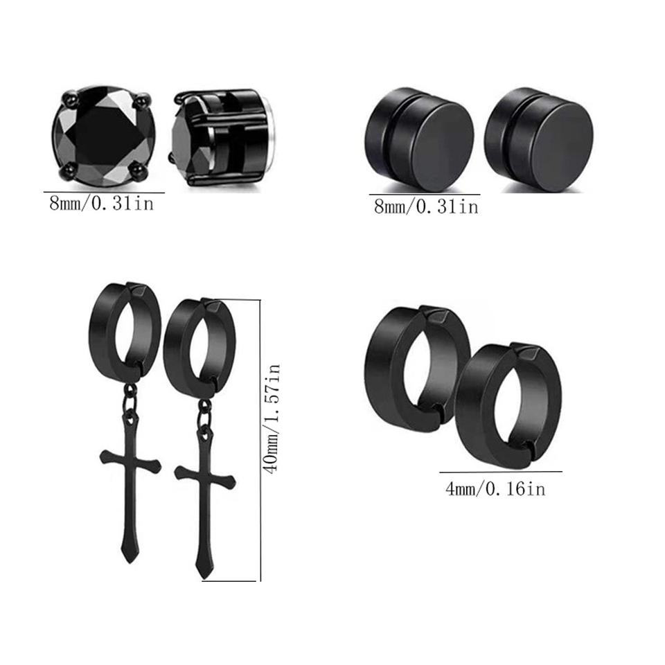 ต่างหูหนีบแม่เหล็กสแตนเลส ประดับเพชรซิร์คอนทรงกากบาท สำหรับผู้ชายและผู้หญิง ไม่ต้องเจาะหู ขนาด 6 มม. 8 มม.