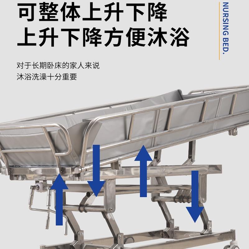 เตียงอาบน้ำสแตนเลสแบบปรับระดับได้สำหรับผู้สูงอายุและผู้ป่วยพิการ ใช้สำหรับดูแลที่บ้าน