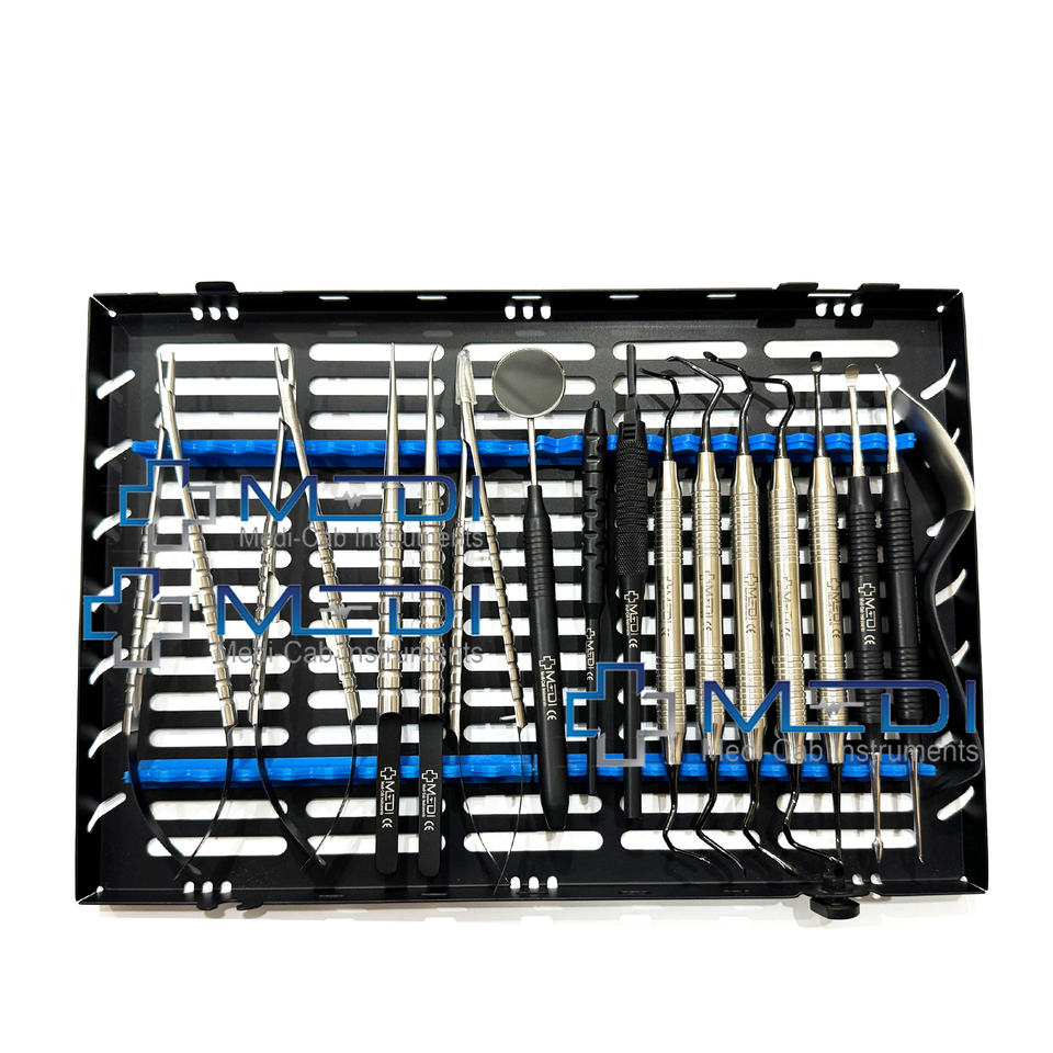 ชุดเครื่องมือทันตกรรมสำหรับทำฟันแบบแมนนวลทำจากสเตนเลสสตีลชุดอุปกรณ์ผ่าตัดในช่องปากกรรไกรวัดขนาดเส้นผ่าศูนย์กลางของกระดูกได้รับการรับรอง