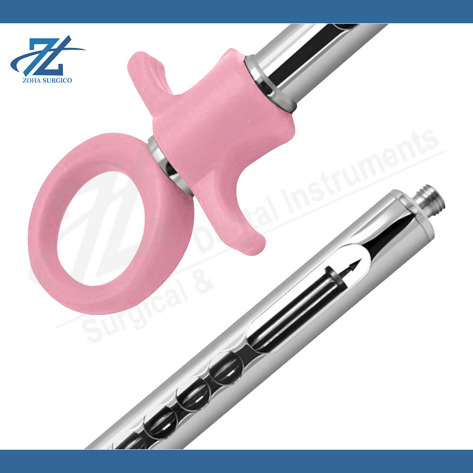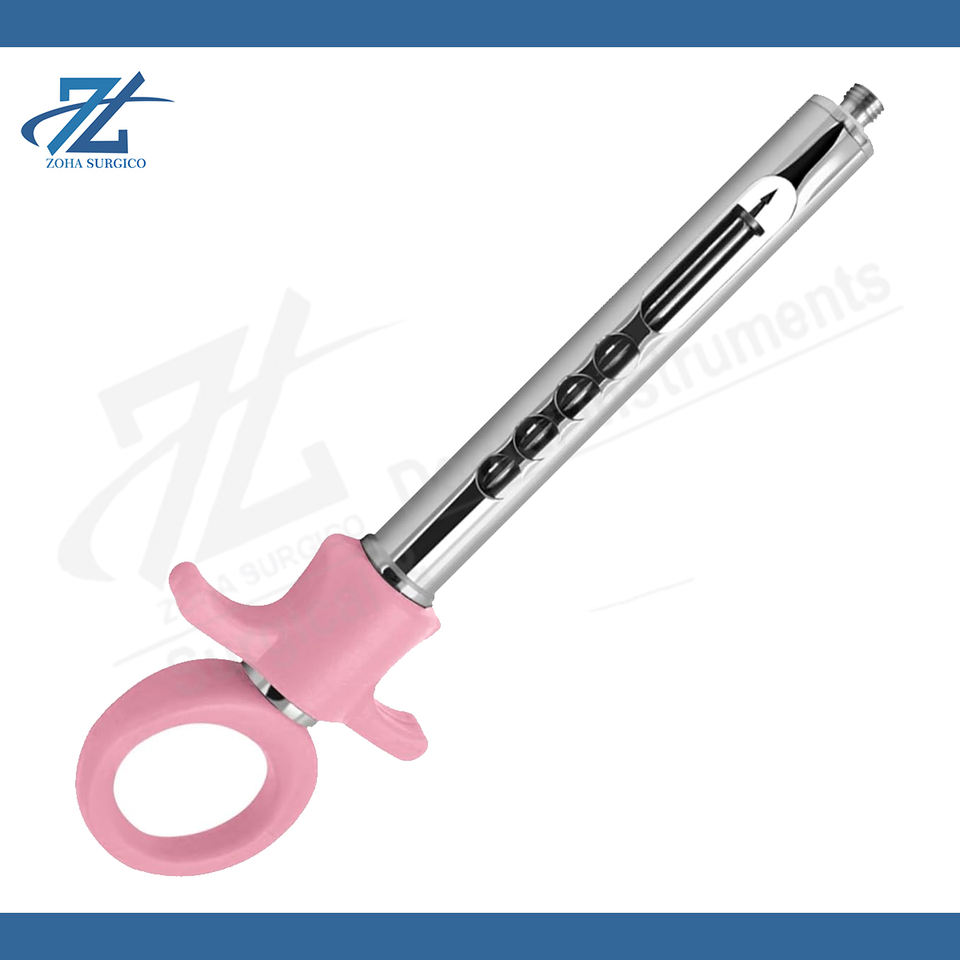 กระบอกฉีดยาทันตกรรมแบบดูดกลับเองได้ ทำจากสแตนเลสสตีล พร้อมด้ามจับตามหลักสรีรศาสตร์ ผลิตในประเทศปากีสถาน