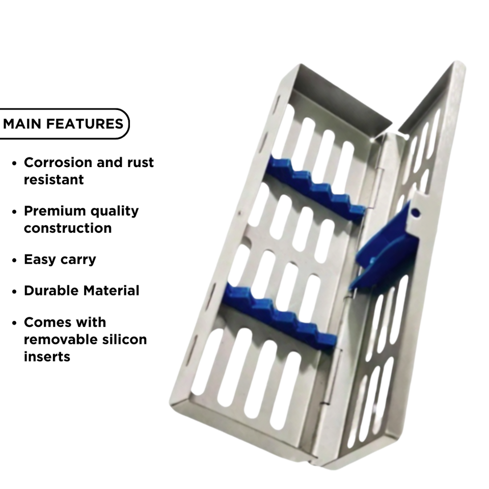 สเปค:Sterilization Cassette Tray, Hinged with Locking Mechanism, Autoclave Sterilization of Instruments