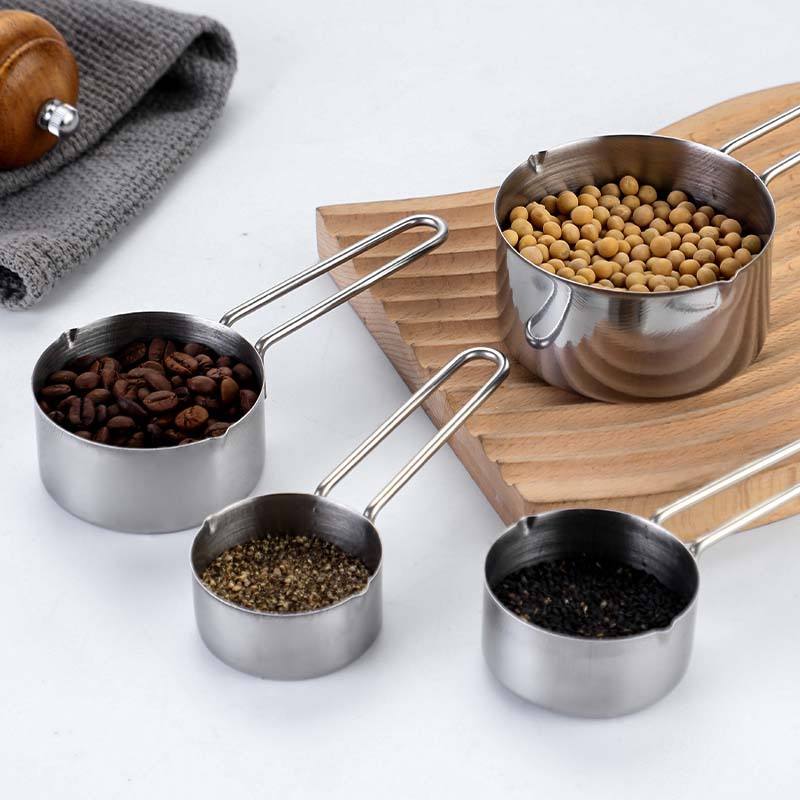ชุดถ้วยตวงสแตนเลส 4 ชิ้น ทนความร้อน สำหรับกาแฟ แป้ง การอบ ใช้ในครัว