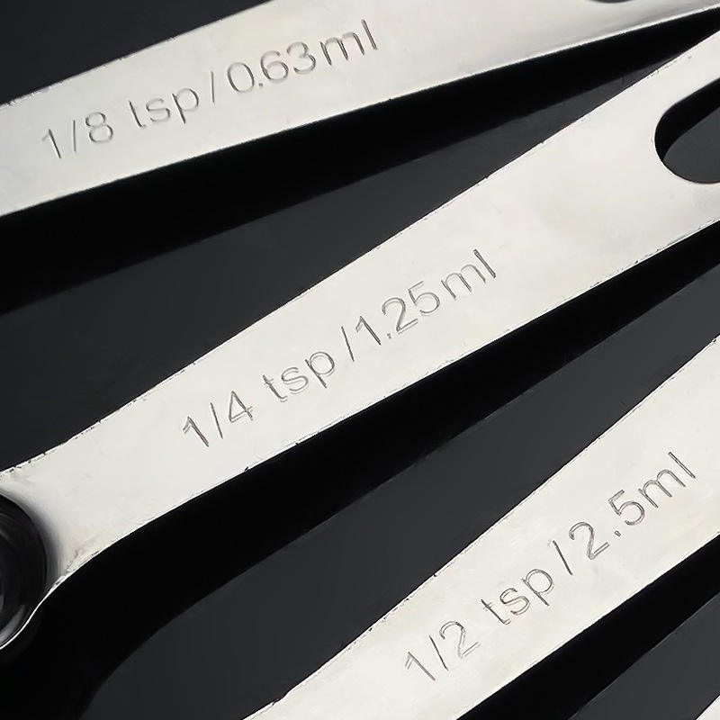 ชุดช้อนตวงสแตนเลส 0.63 มล. ถึง 15 มล. ด้ามยาวแบบมีสเกล เกรดอาหาร สำหรับทำขนมและทำอาหาร