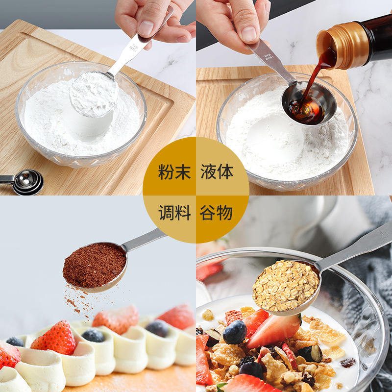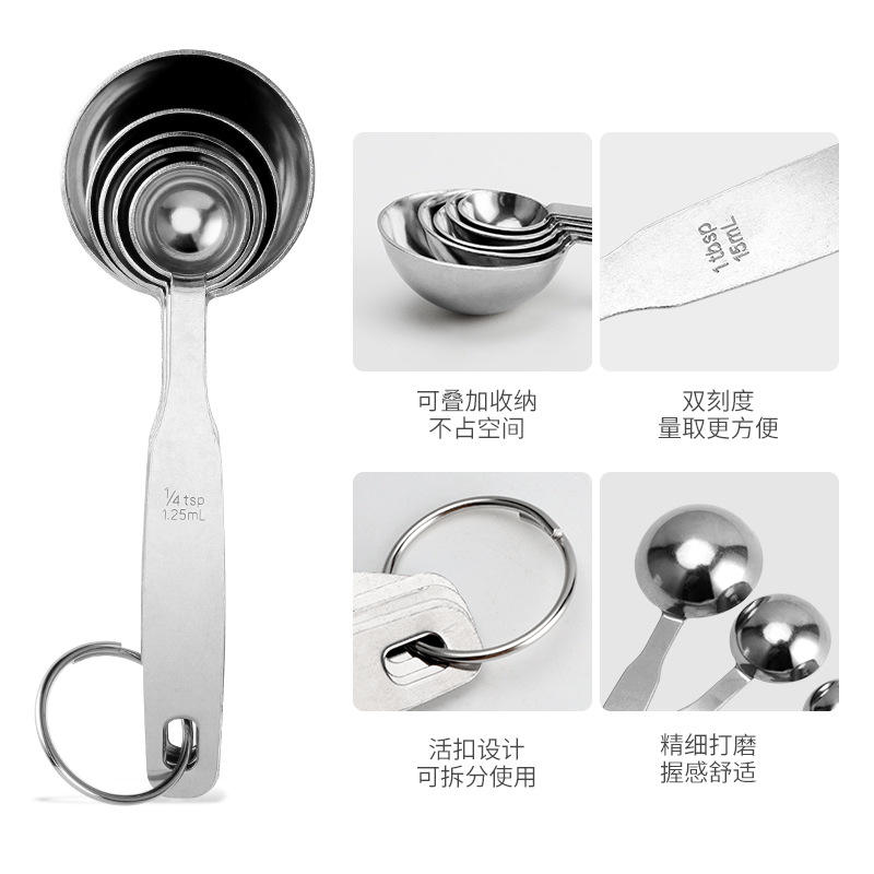 ชุดช้อนตวงสแตนเลส 5 ชิ้น ปลอดภัยสำหรับเครื่องล้างจาน สำหรับอบกาแฟ นมผง ดีไซน์เรียบง่าย