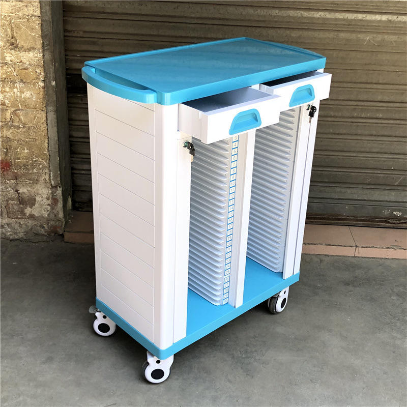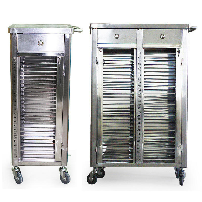 รถเข็นบันทึกข้อมูลทางการแพทย์สแตนเลส 370-850x380-400x810-1520 มม. 4 ล้อ พร้อมกุญแจล็อคแยกอิสระ รถเข็นโรงพยาบาล ทนทาน