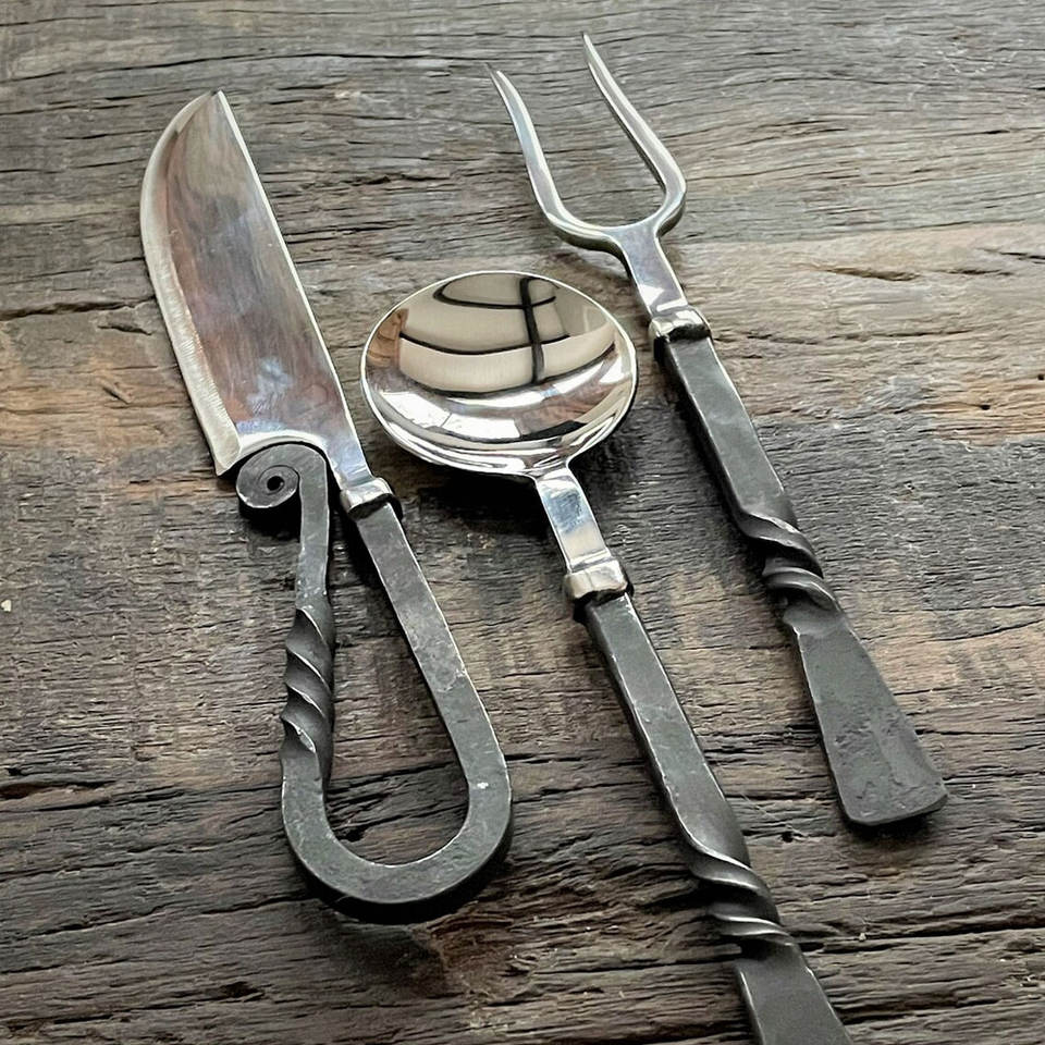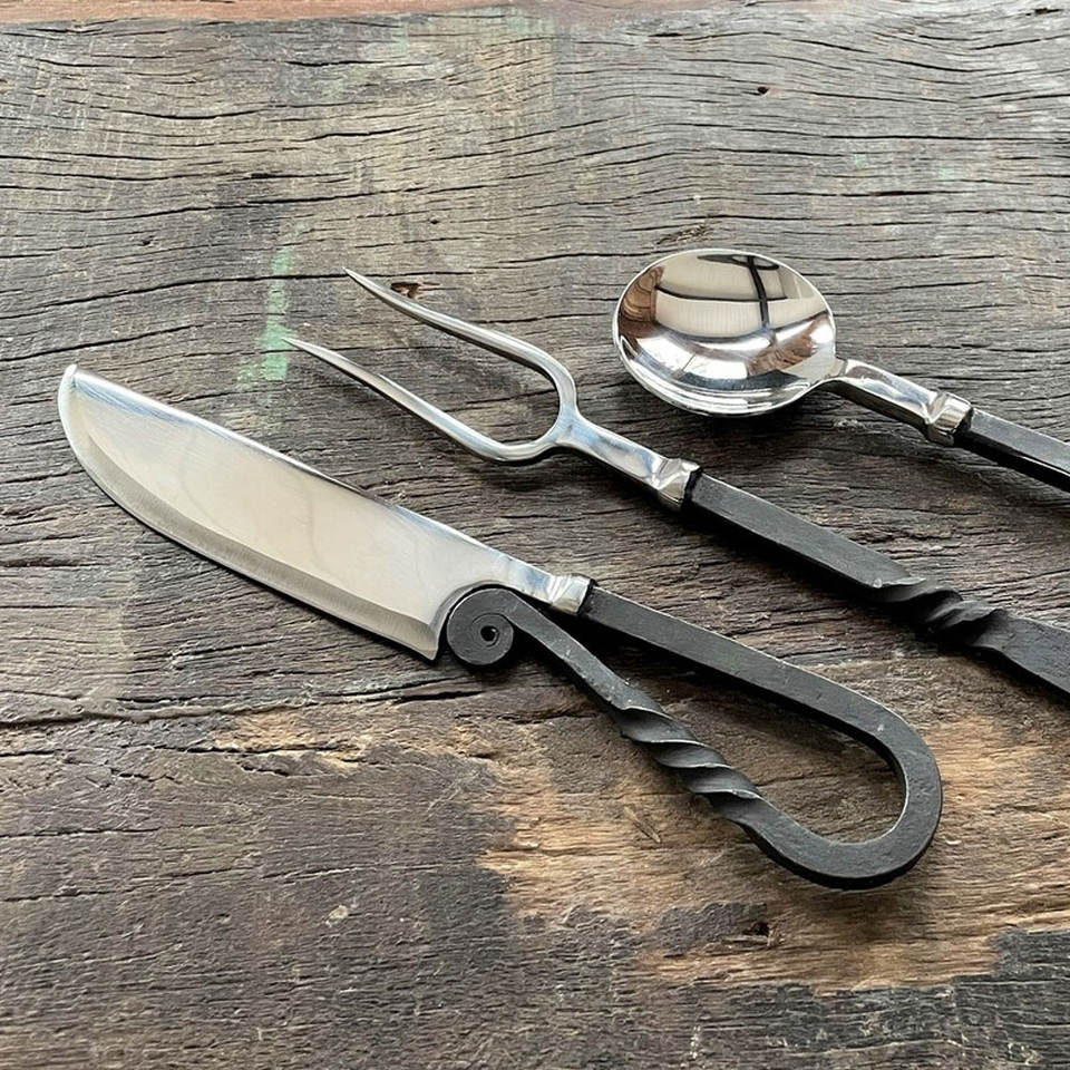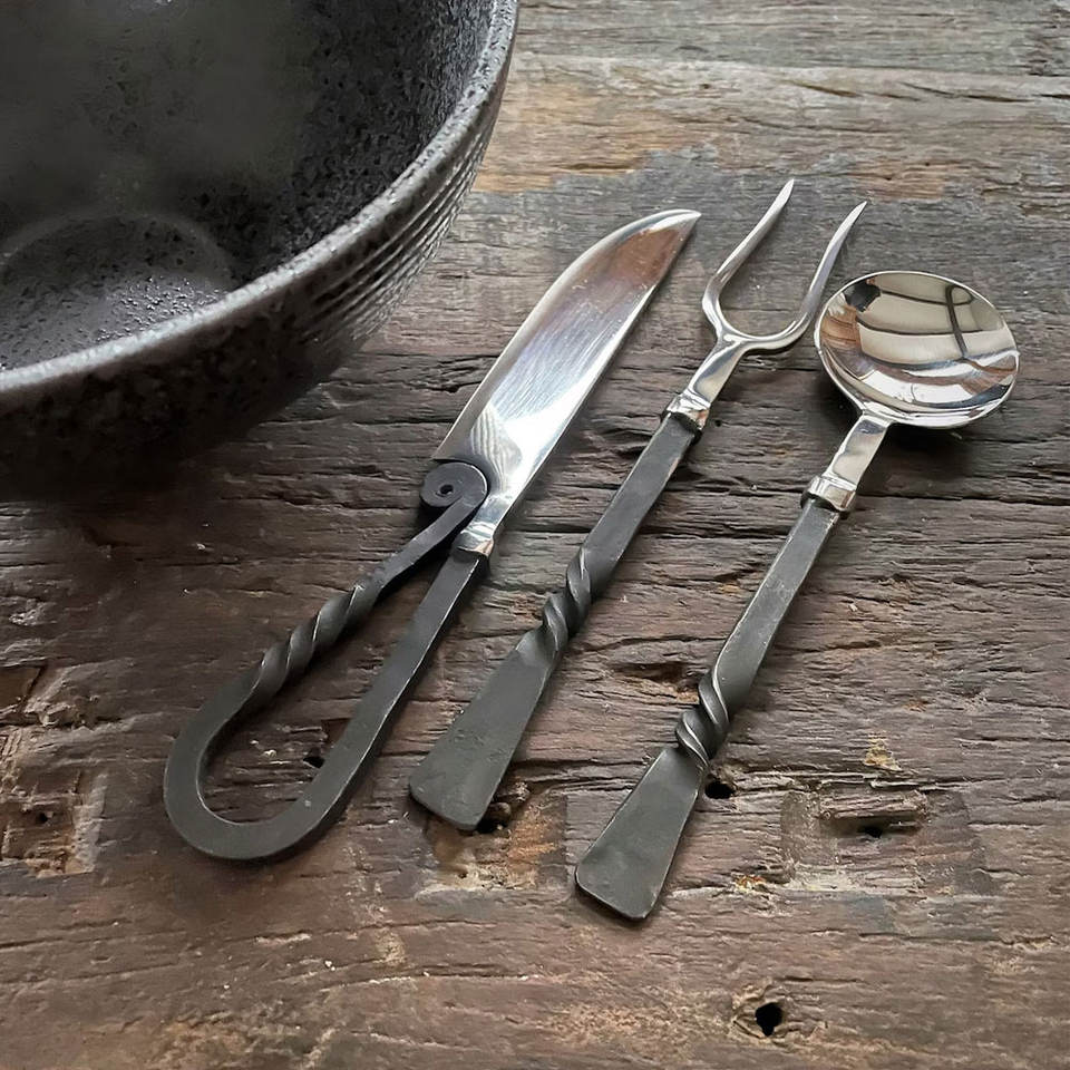 ชุดเครื่องใช้บนโต๊ะอาหารสไตล์ไวกิ้งทำมือสไตล์นอร์ดิกแบบชนบทสำหรับงานเลี้ยงกลางแจ้งการตั้งแคมป์