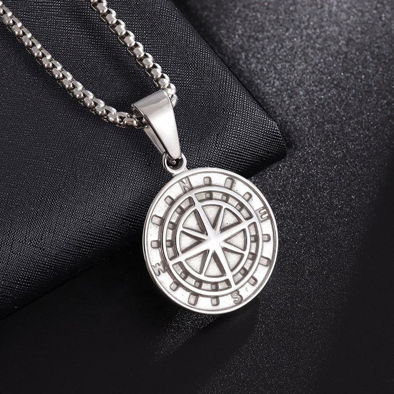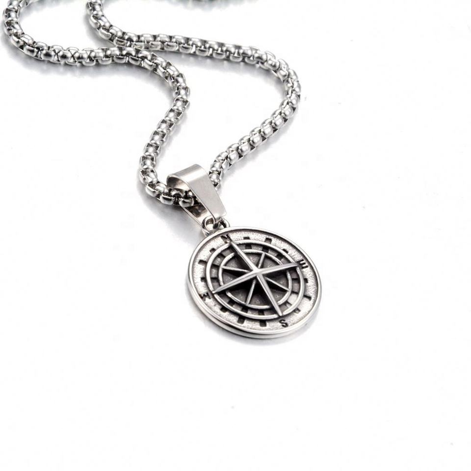 จี้สร้อยคอรูปเข็มทิศทรงกลมสไตล์ฮิปฮอปสำหรับผู้ชาย ทำจากสแตนเลสสตีล ดีไซน์วินเทจ ประดับเหรียญรูปดาว