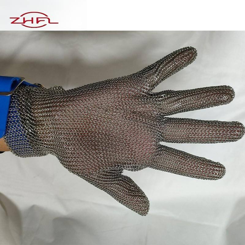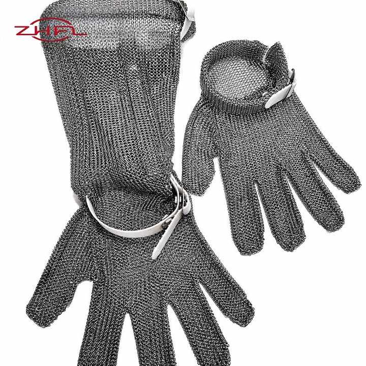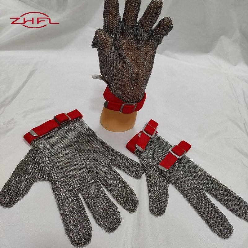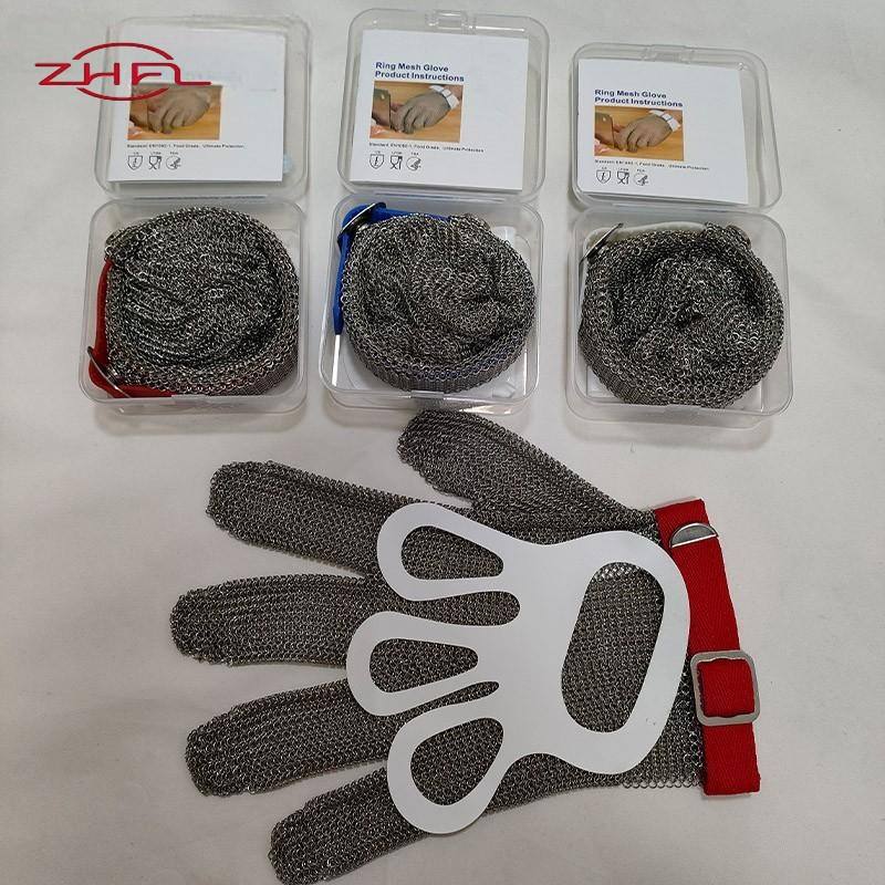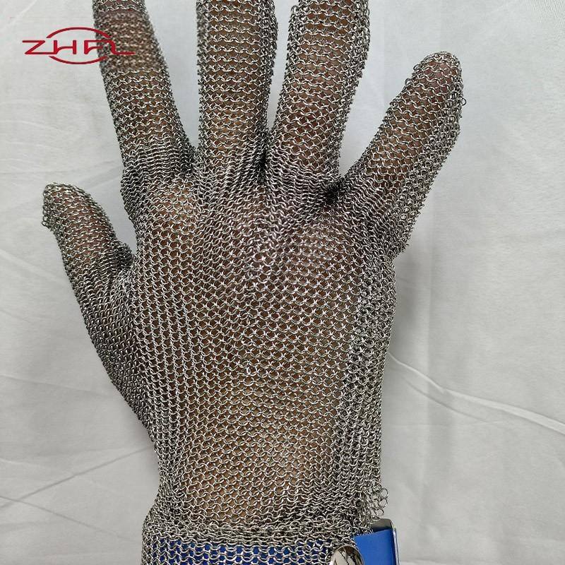 ถุงมือตาข่ายสแตนเลสสำหรับงานชำแหละเนื้อ ป้องกันการบาด ทนทาน ทอแบบเรียบ มาตรฐาน EN388/ANSI ป้องกันการบาด