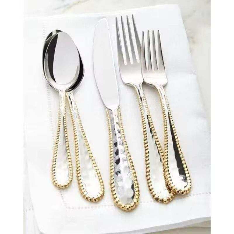 ชุดช้อนส้อมสแตนเลสชุดเครื่องใช้บนโต๊ะอาหารทำด้วยมือชุดเครื่องใช้บนโต๊ะอาหารชุดเครื่องใช้บนโต๊ะอาหารทำด้วยมือของขวัญแต่งงานหรูหราทำจากโลหะ