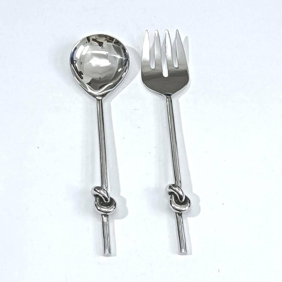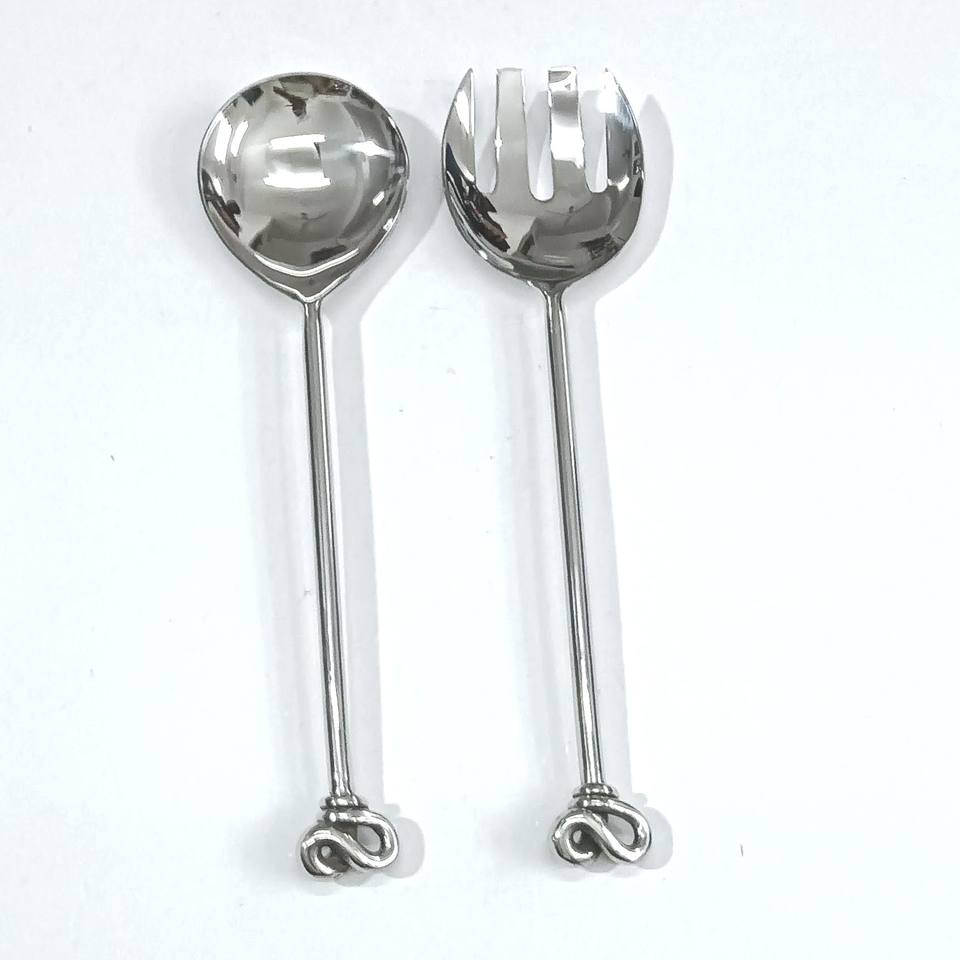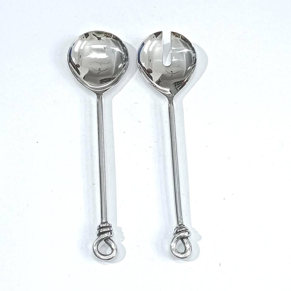 ชุดช้อนสลัดสแตนเลสตกแต่งด้วยงานแฮนด์เมด ด้ามจับลายปมใหญ่ ขัดเงาด้วยมือ สำหรับใช้ในครัว