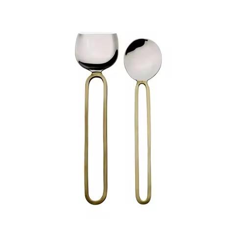 ชุดเสิร์ฟสลัดสแตนเลสสตีล ชุดอุปกรณ์เสิร์ฟสลัดสแตนเลสสตีลสีทองและสีเงิน