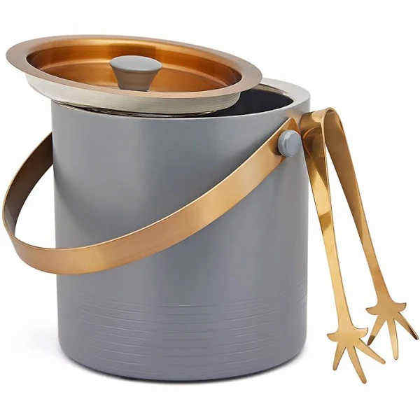 ถังน้ำแข็งโลหะสแตนเลสพร้อมที่จับฝาปิดและฉนวนกันความร้อนผนังสองชั้นสำหรับการแช่แข็งเครื่องดื่มที่ดีที่สุด