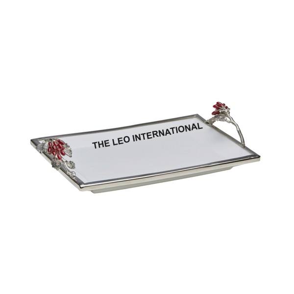 ถาดสแตนเลสเคลือบเงาทรงสี่เหลี่ยมผืนผ้าทำมือสุดหรูถาดตกแต่ง