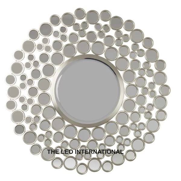 กระจกติดผนังกระจกโลหะทรงกลมสีเงินสไตล์โมเดิร์นจากอินเดียตกแต่งบ้านแบบแฮนด์เมดสุดหรู