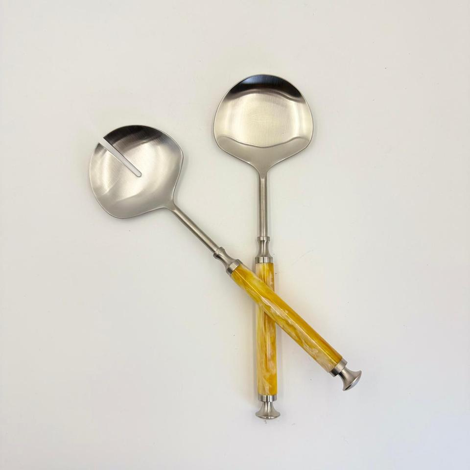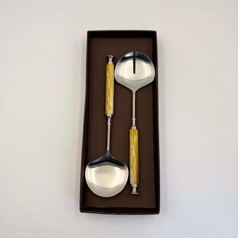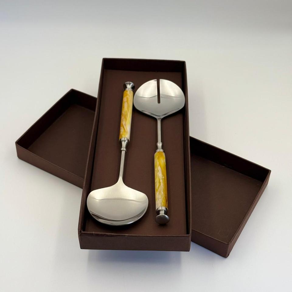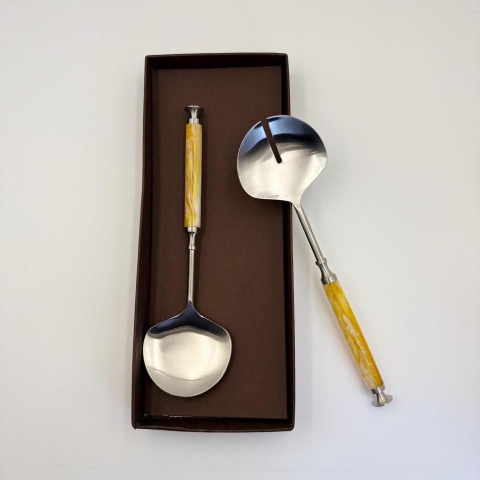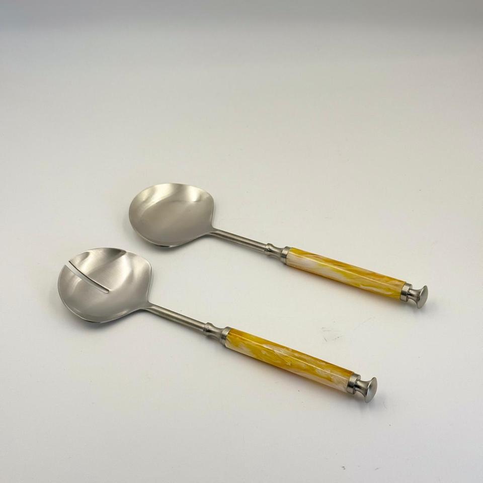 ชุดช้อนเสิร์ฟโลหะสแตนเลสพร้อมด้ามจับเรซิ่น ชุดอุปกรณ์เสิร์ฟสลัดโลหะคุณภาพพรีเมียม ขายดี
