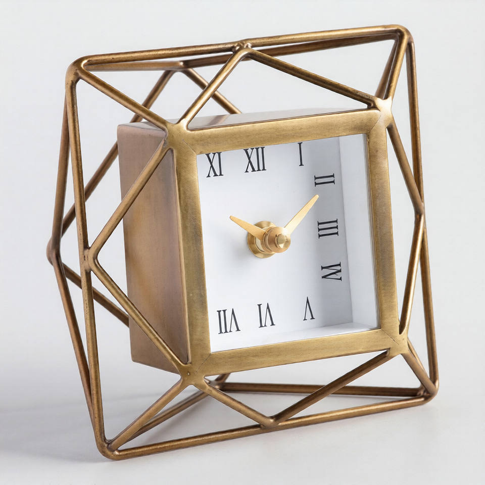 นาฬิกาตั้งโต๊ะโลหะสแตนเลสทรงแปลกตาเคลือบทองเหลืองโบราณ นาฬิกาตั้งโต๊ะควอตซ์โลหะสไตล์คลาสสิกสมัยใหม่