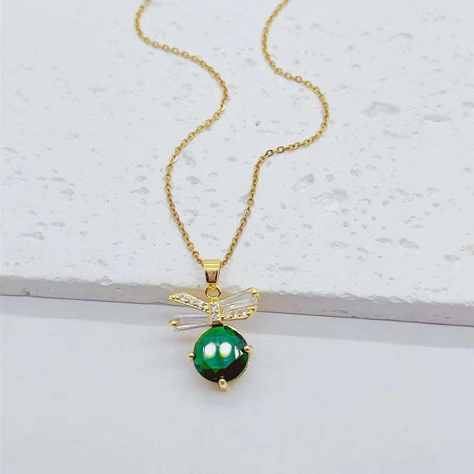 ชุดเครื่องประดับแฟชั่นแบบฝังเล็กทำจากสแตนเลสชุดเครื่องประดับต่างหูรูปผีเสื้อสุดหรูสร้อยคอเพื่อเพิ่มบุคลิก