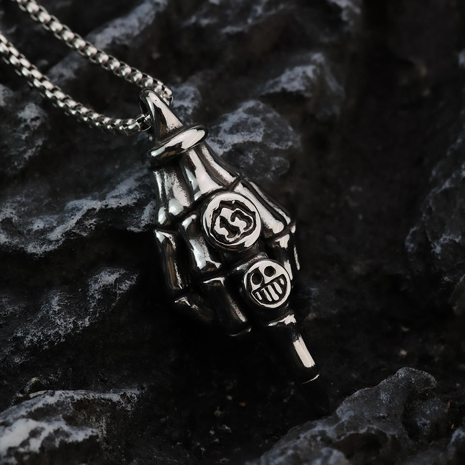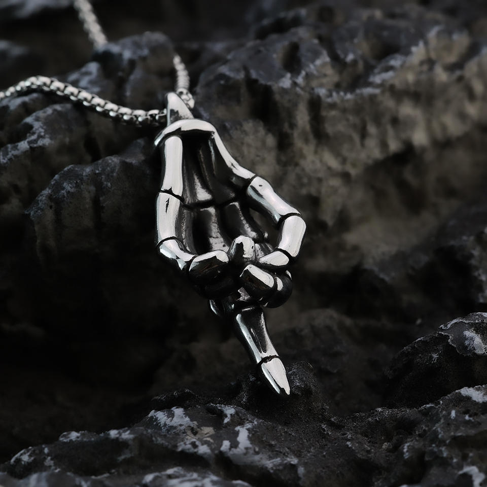 จี้รูปนิ้วกลางทำจากสแตนเลส สไตล์ฮิปฮอปสำหรับผู้ชาย ดีไซน์เรขาคณิตแบบอสมมาตร เครื่องประดับแฟชั่น