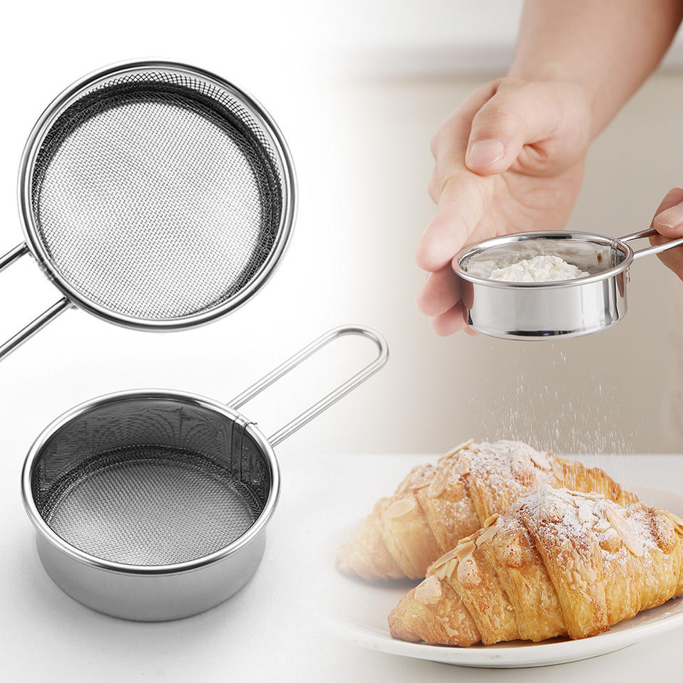 ตะแกรงร่อนแป้งสแตนเลสขนาดเล็ก 40 เมช แบบมือถือ สำหรับร่อนน้ำตาล ผงโกโก้ อุปกรณ์ครัว