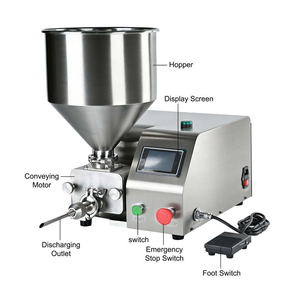 เครื่องบรรจุและตกแต่งเค้ก โยเกิร์ต แยม ไอศกรีม แบบตั้งโต๊ะ ควบคุมด้วย PLC ขนาดเล็ก ทำจากสแตนเลส แบบแมนนวลและอัตโนมัติ
