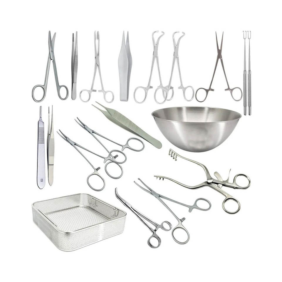 ชุดอุปกรณ์ดูแลบาดแผลขนาดเล็กสำหรับการผ่าตัดขั้นพื้นฐาน ทำจากสแตนเลส ประกอบด้วยเครื่องมือแพทย์สำหรับการปฐมพยาบาลและผ่าตัด จำนวน 20 ชิ้น สำหรับแพทย์และพยาบาล