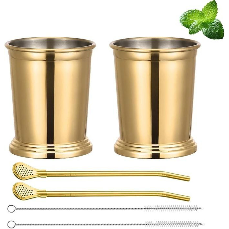 ชุดแก้วมิ้นท์จูลีปสแตนเลส 4 ใบ พร้อมหลอดดูด แก้วค็อกเทลรสต่างๆ แก้วน้ำผสมเครื่องดื่ม อุปกรณ์บาร์ค็อกเทล แก้วโลหะนำกลับมาใช้ใหม่ได้