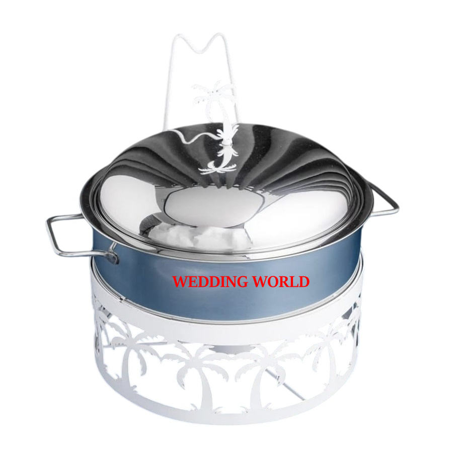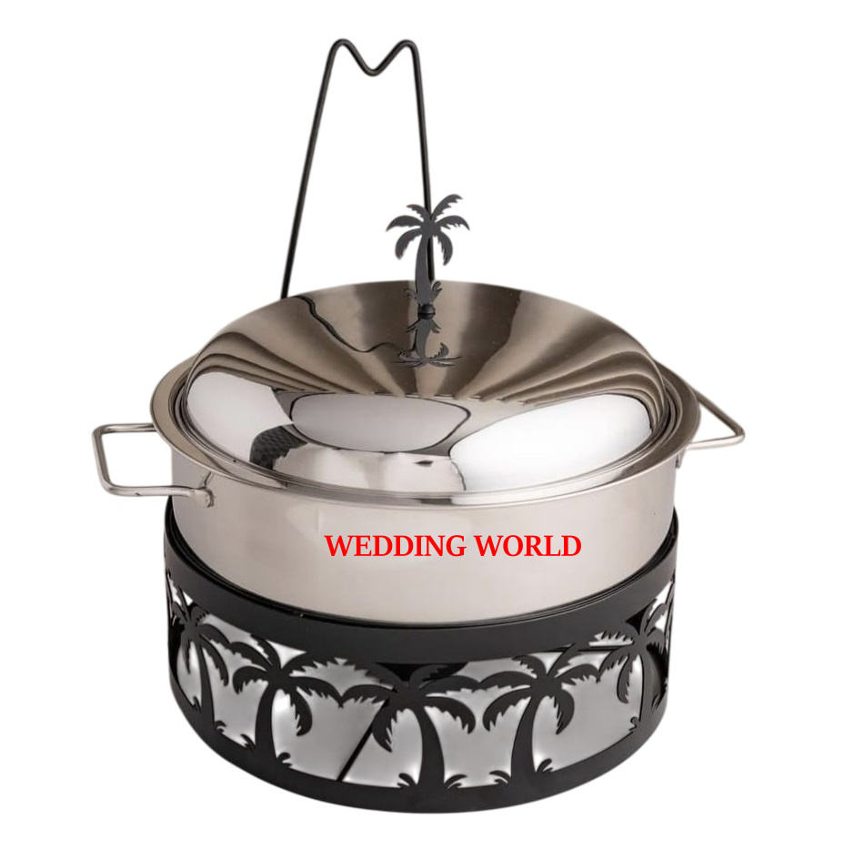 ถาดอุ่นอาหารสแตนเลสพร้อมฝาปิดแบบแขวน คุณภาพพรีเมียม ทำด้วยมือ รูปทรงกลม ภาชนะอุ่นอาหารโลหะสุดหรู